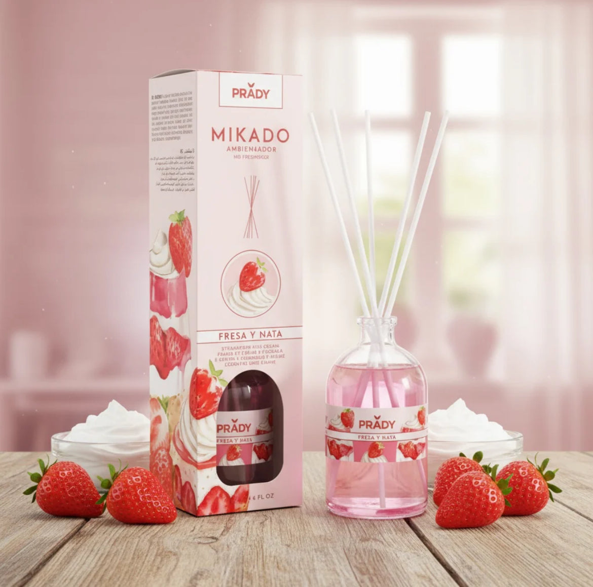 Mikado d'ambiance à la fraise et à la crème.